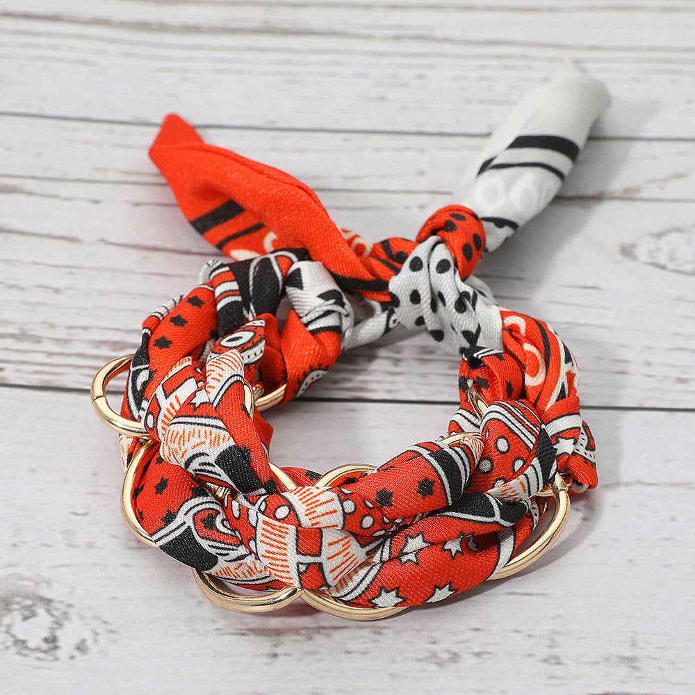 Metal Interlocking Ring Fabric Bandana Scarf Adjustable Bracelet
