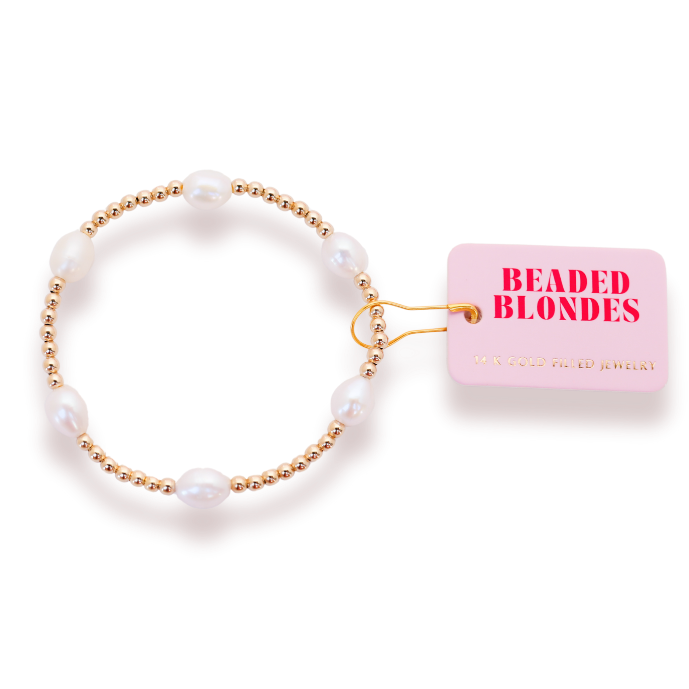 The pearl poppi is a mix of 3mm beads & 4mm freshwater pearls beads. • 14 K gold filled & elastic string • Handstrung in College Station, Texas. Sourced in the US. • Waterproof, workout proof & tarnish proof